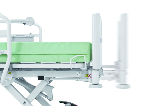 Para un mayor nivel de protección para el paciente, el enfermero puede equipar la cama con un protector independiente y con extensión de cama. El protector bloquea automáticamente la barandilla en posición subida.
