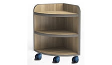 La mesilla tiene un frontal abierto especialmente diseñado para residentes que sufren demencia. El contenido es fácilmente accesible para el residente gracias al diseño abierto. Gracias al diseño bicolor, el paciente puede distinguir mejor el contorno de la mesilla. Los cantos romos reducen el riesgo de lesión. Para su fácil transporte al lugar deseado, la mesilla cuenta con 4 ruedas de modo estándar.