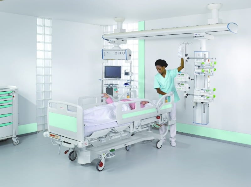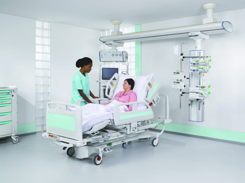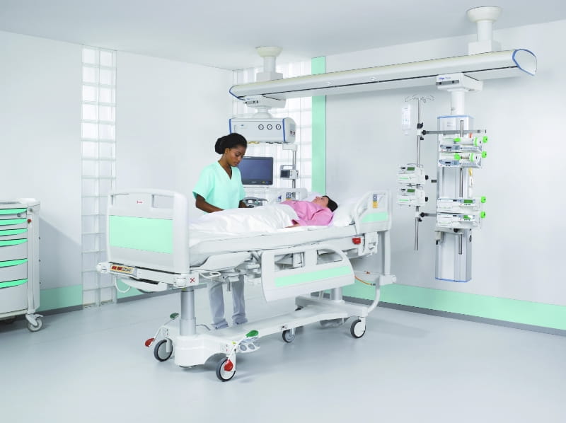 El diseño y funcionalidad de la cama Eleganza 3XC están hechos a la medida para cumplir con los altos estándares de cuidados intensivos. Esta moderna cama con construcción de columnas, ofrece un programa integrado que permite al personal médico y de enfermería tratar y cuidar a los pacientes críticos.