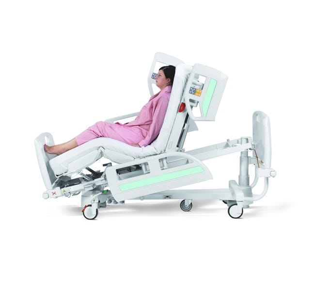 La posición de silla cardiaca es fácilmente ajustada usando un simple botón en el control de enfermería. En la posición sentada, la capacidad pulmonar aumenta y el cambio de gases mejora.