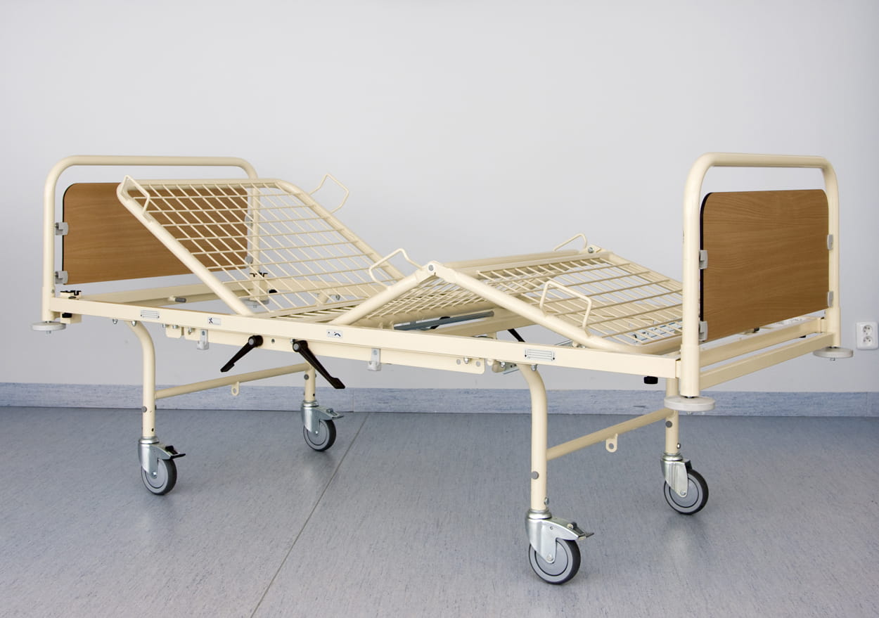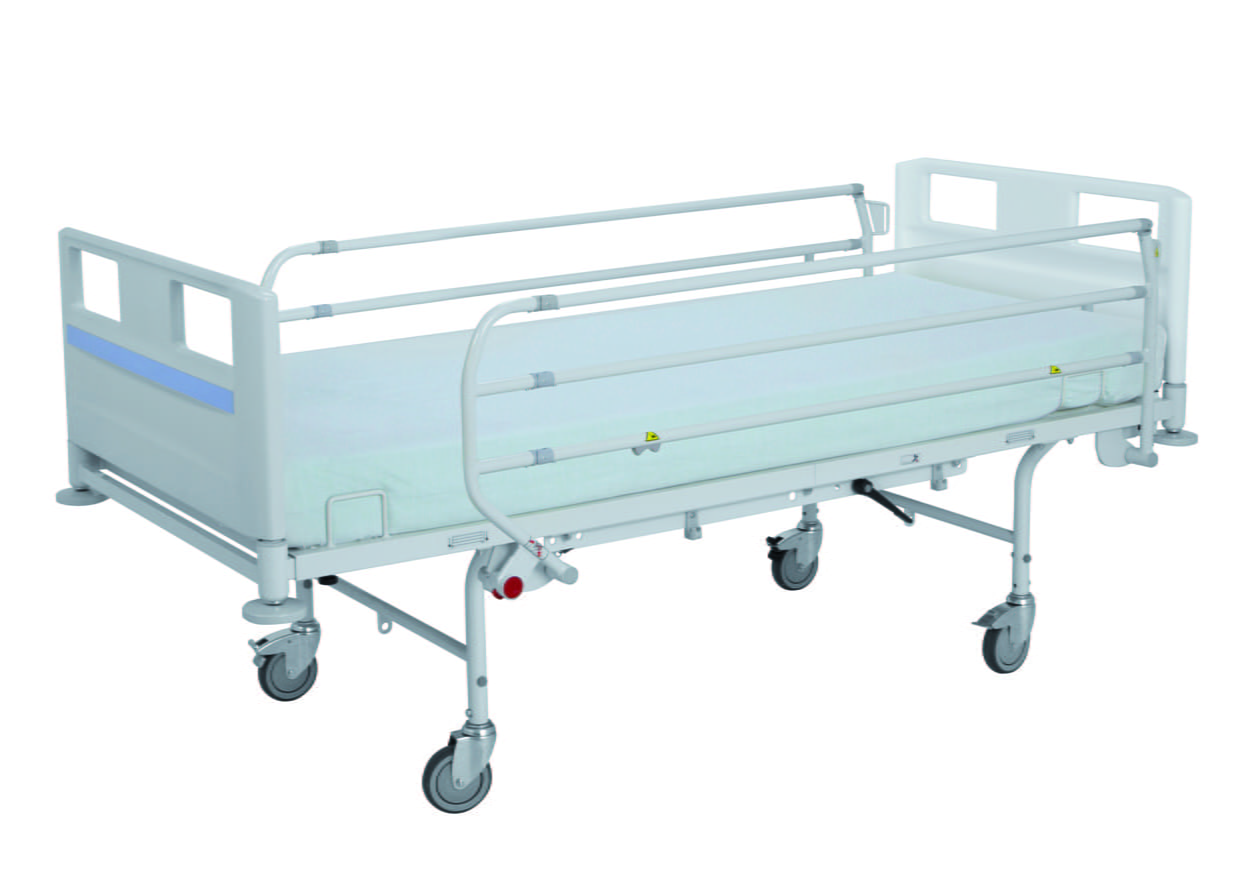 La rejilla en la plataforma de las secciones de la cama está soldada por debajo de la esquina superior del marco para prevenir riesgos de abrasión y heridas del personal de enfermería al cambiar la ropa de cama.