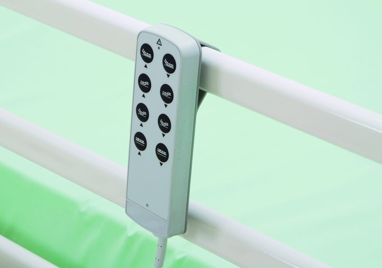 Como estándar, todas las camas cuentas con soportes para postes de infusión. Los soportes se encuentran en las esquinas de cabeceras y pieceras de la cama.