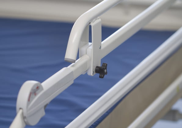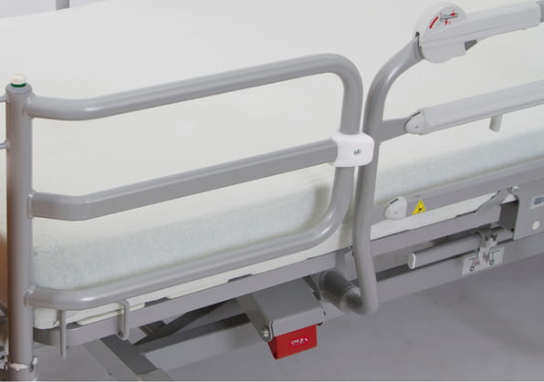 Para un mayor nivel de protección al paciente, la enfermera puede equipar la cama con un protector y extensión independientes. El protector asegurará el barandal en la posición más alta de manera automática.