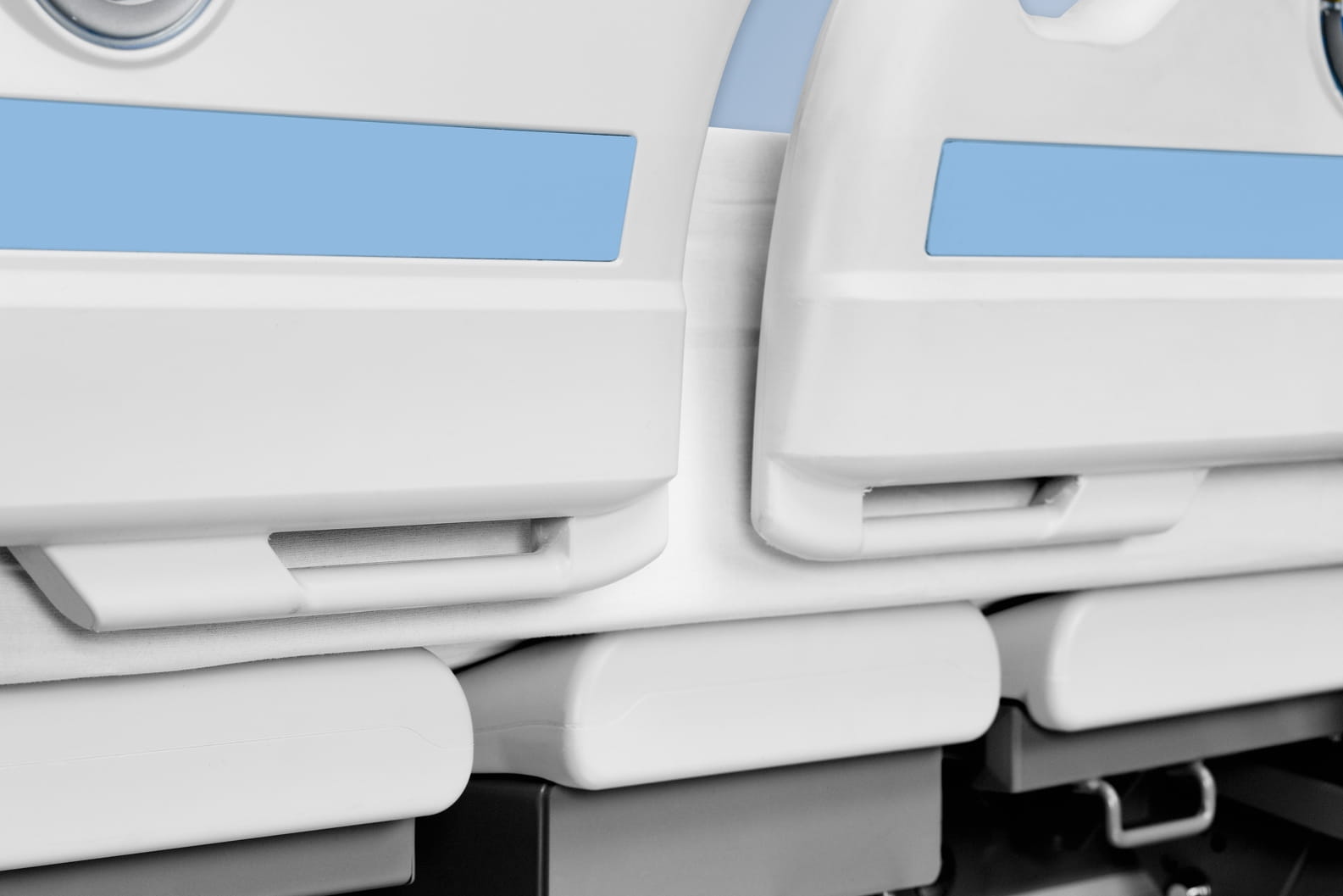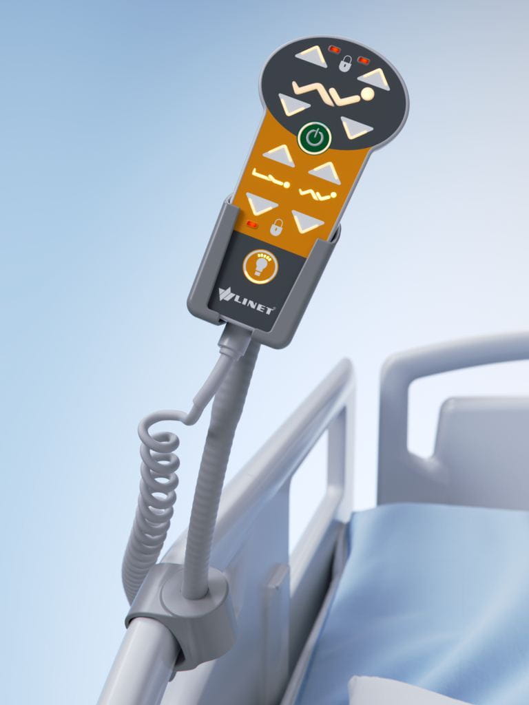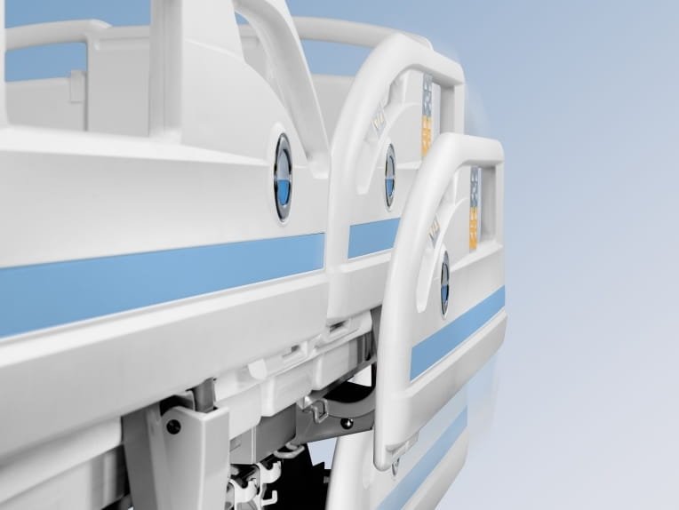 De manera única, el Mobi-Lift ha sido integrado en los barandales de la zona de cabeza de la Eleganza 2. Esto permite al paciente ajustar la altura de la plataforma del colchón de acuerdo a sus necesidades individuales sin necesidad de apoyarse en el agarre de los barandales.