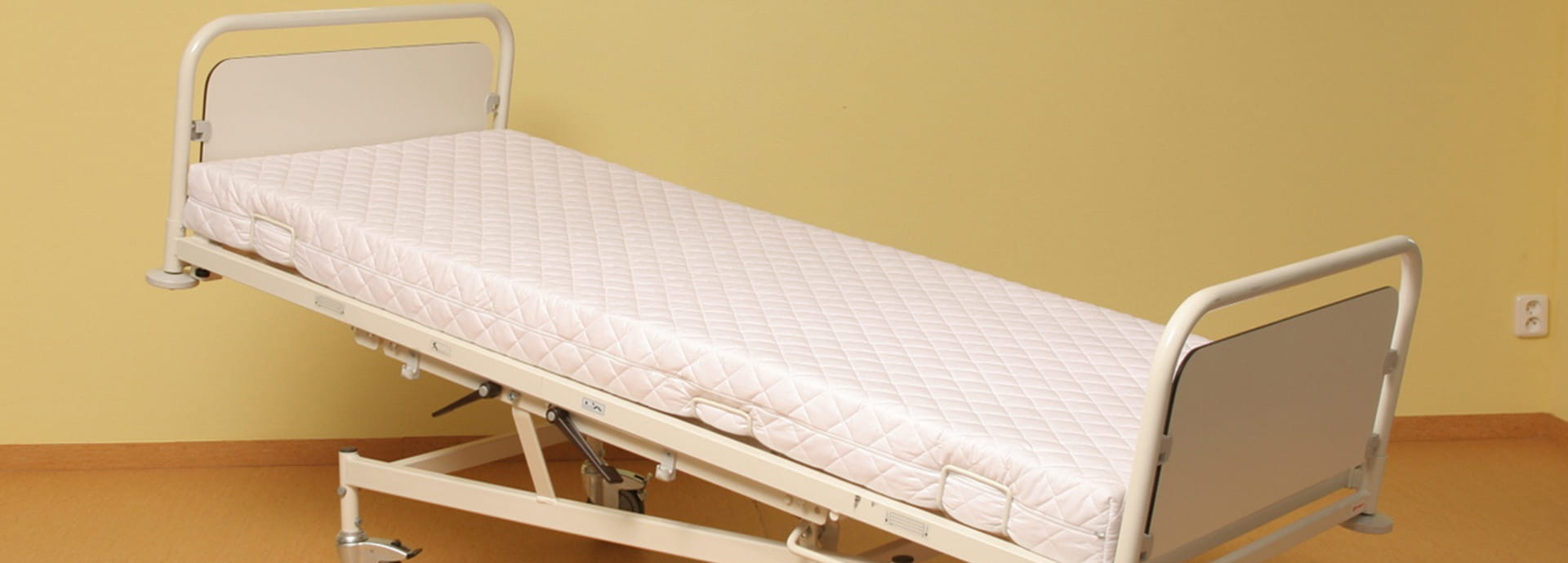 Terra, a mechanically adjustable bed, allows complete positioning of the bed. The integrated gas springs make positioning of the backrest and thigh rest very easy and comfortable. Using a raster, the calf section can be mechanically adjusted to 5 height levels. TR/ATR and mattress height adjustment uses gravitation and is mechanically adjustable.