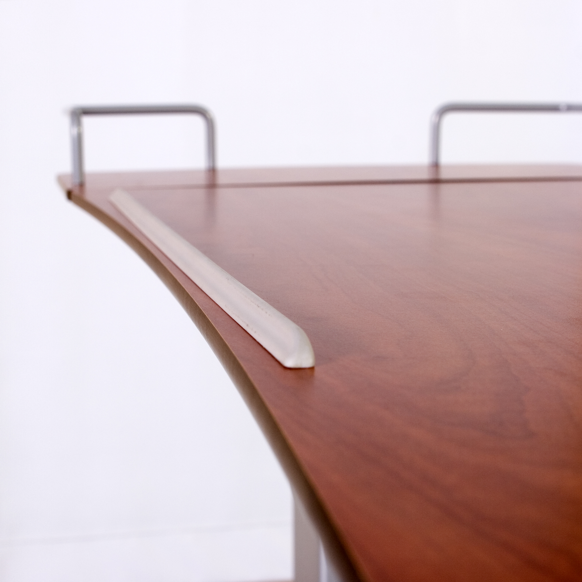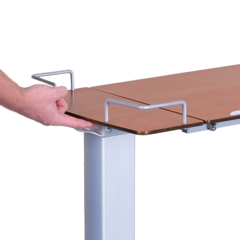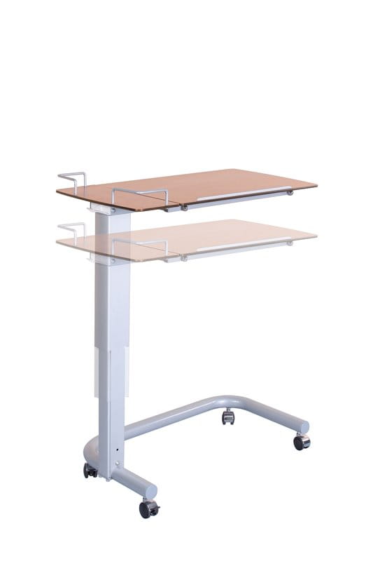 The Solido, patient overbed table has a lightweight design and features a height-adjustable and tilting dining board.