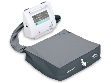 El cojín de asiento opcional, con presión alternante dinámica, permite los cuidados las 24 horas. El cojín utiliza la misma unidad de control SCU que la cama. El SCU cambia automáticamente al modo de cojín cuando detecta que éste está conectado.