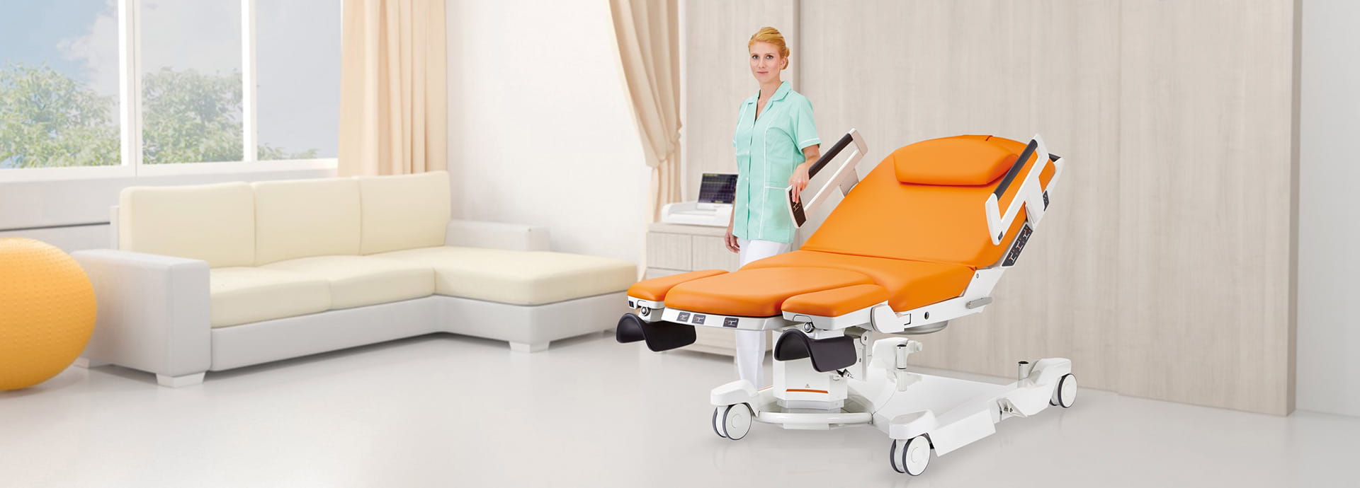 Découvrez le nouveau lit de maternité ave 2. Ce lit convient pour toutes les phases de l’accouchement : l’accouchement en lui-même, le rétablissement après la naissance, la période postnatale. Ainsi, les futures mères et leur famille peuvent vivre cette expérience en toute quiétude dans des chambres chaleureuses et conviviales.