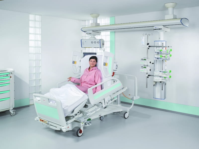 Le concept des espaces minimaux offre au patient une protection contre les pincements ou coincements optimale : la distance entre chaque éléments du lit est mesurée et contrôlée conforme aux exigences de la norme EN 60601-2-52.