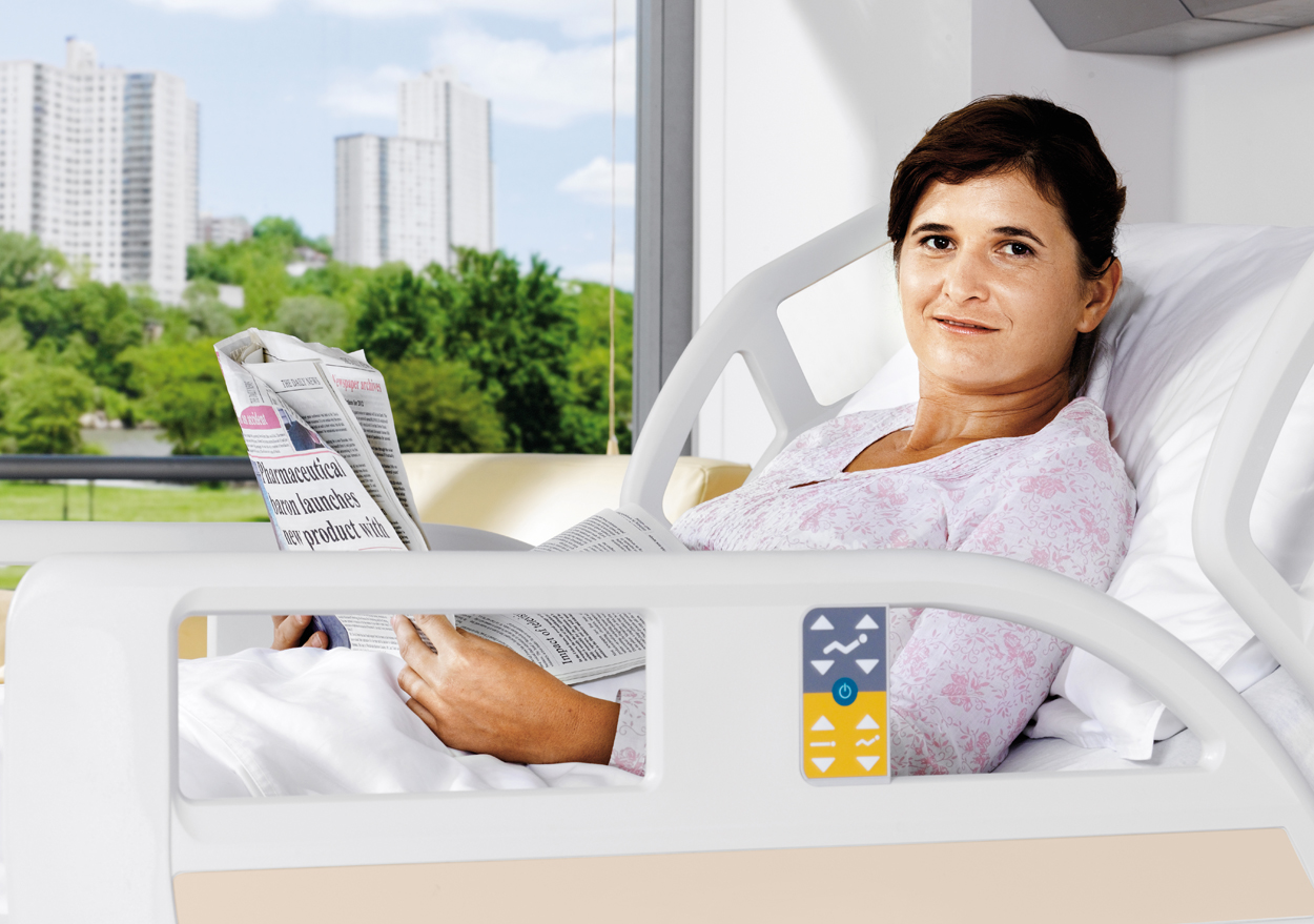 Eleganza 3 influence positivement le traitement des patients en rendant plus simple le travail du personnel soignant à l‘aide de propriétés uniques. Le lit hospitalier n‘est plus qu‘une simple surface de couchage: Eleganza 3 contribue activement aux thérapies et aux traitements grâce à des fonctionnalités innovantes et autres supports de mobilisation intégrés.