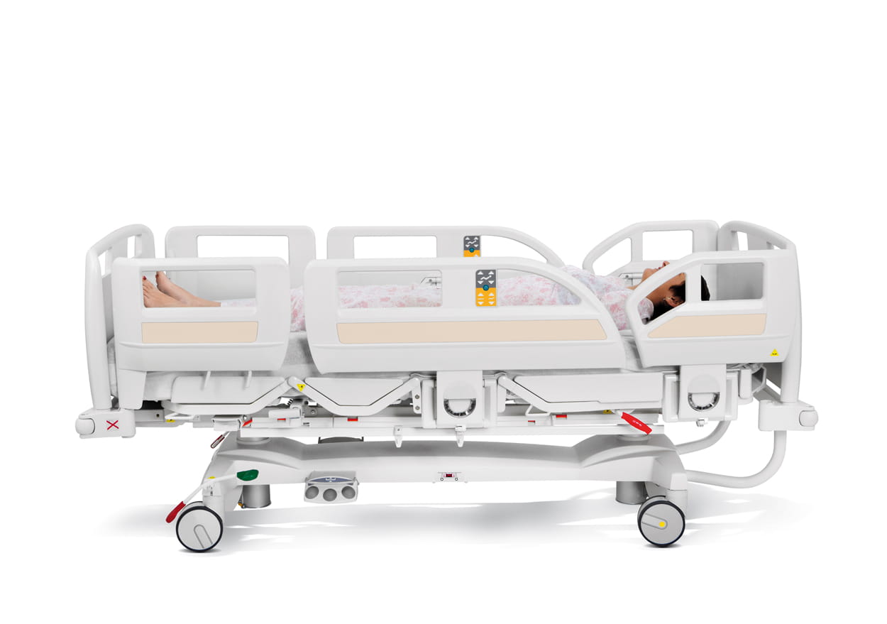 Le concept des espaces minimaux offre au patient une protection contre les pincements ou coincements optimale : la distance entre chaque éléments du lit est mesurée et contrôlée conforme aux exigences de la norme EN 60601-2-52.