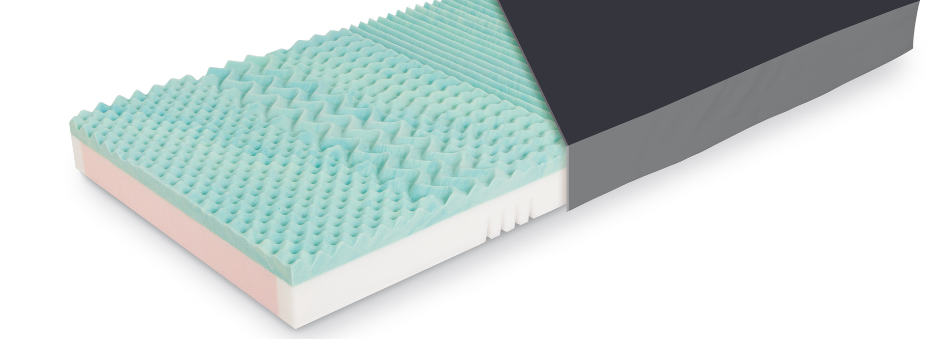 Âme du matelas à trois couches constituée de mousse PUR et VISCO Ininflammable (CRIB 5) |