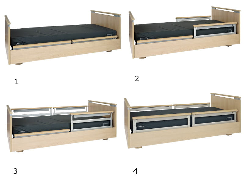 Snel inspelen op veranderende bewonerssituaties dankzij het sluiten van de tussenruimte met (1) en zonder handbediening (2) of een volledig verstelbaar bedhek (3).