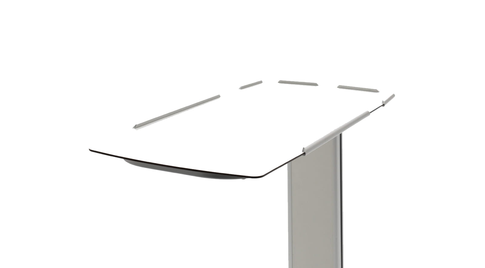 Het bedtafelblad is zijdelings draaibaar en in hoogte verstelbaar in het bereik 72,5 tot 102,5 cm