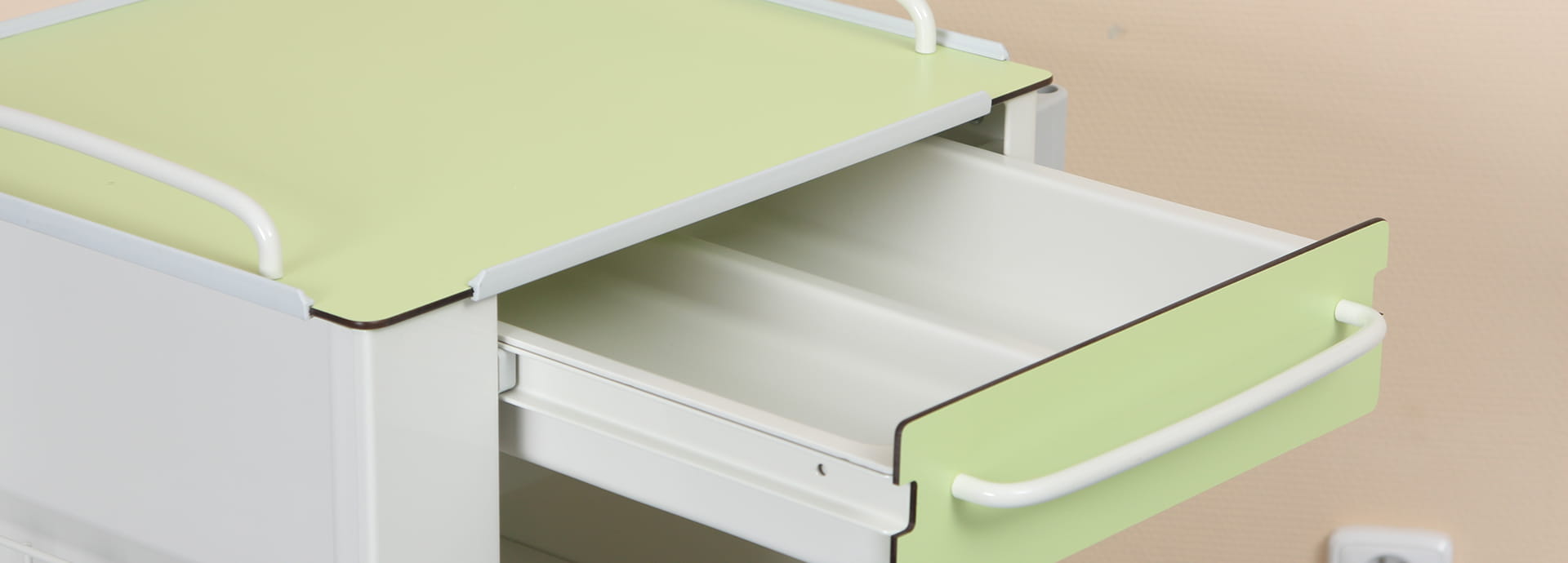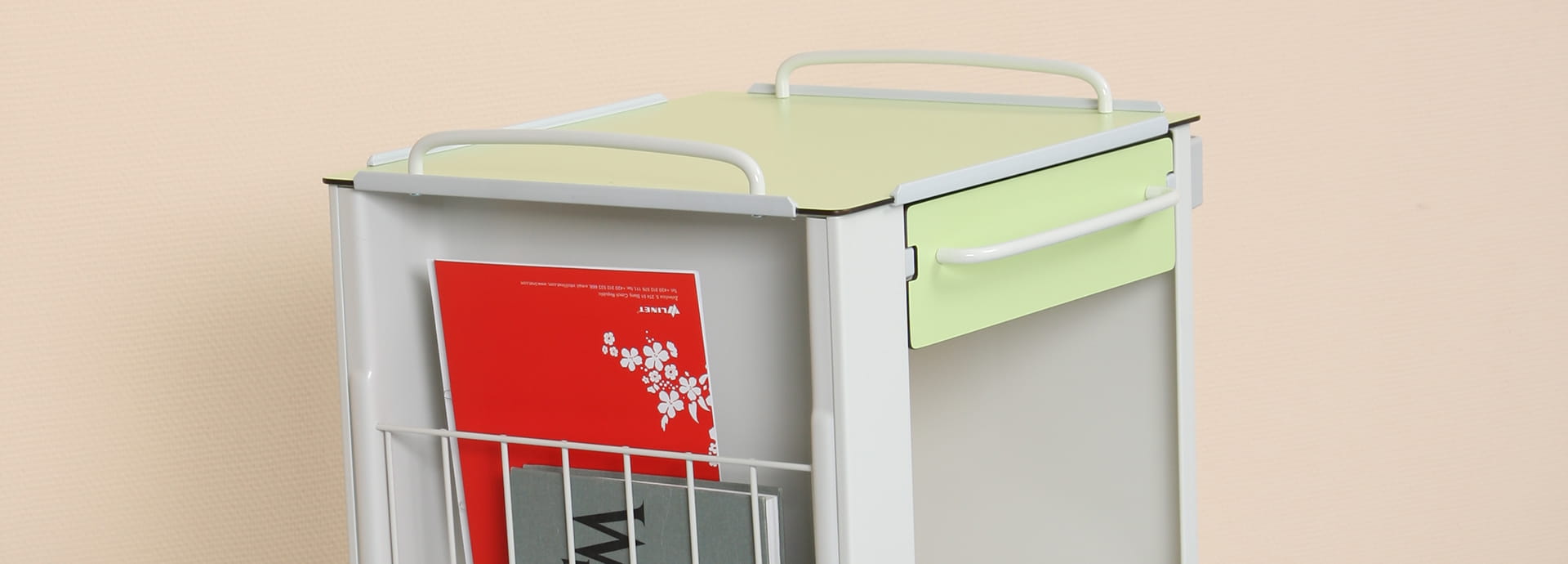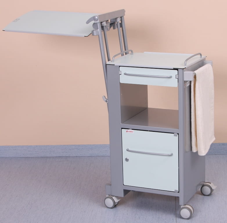 • Het nachtkastje is bovendien aan de zijkant voorzien van een handdoekrek en goed bereikbaar voor de patiënt